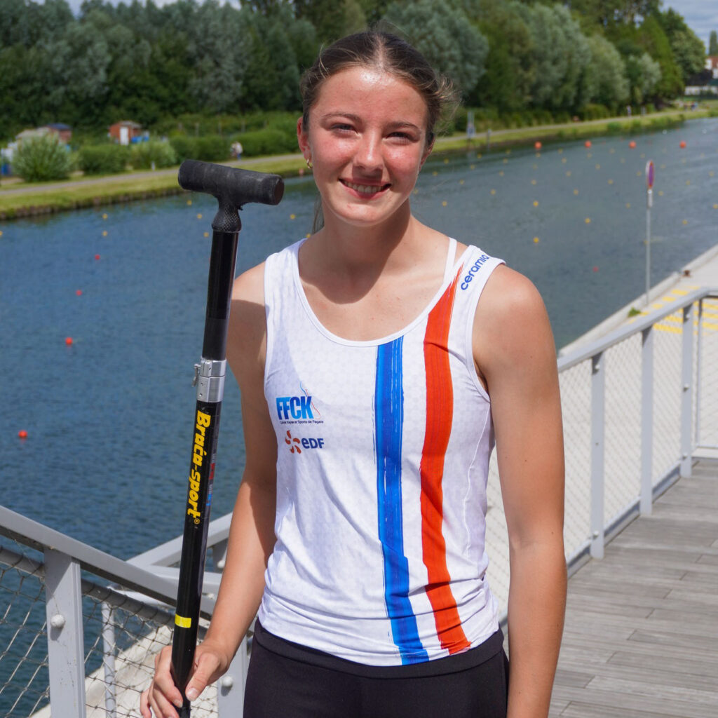 Sélectionnée à 15 ans en équipe de France junior suite à la régate de Bratislava où elle s’était imposée en C2 500 m associée à Lisa Ruiz (Lille), Lilou Dissaux, a pris cette fois une formidable 6e place en finale, toujours en C2 500. 8e temps en série, 7e en demi-finale, elle a encore progressé en finale qu’elle a attaquée « tambour battant » avec sa partenaire.
